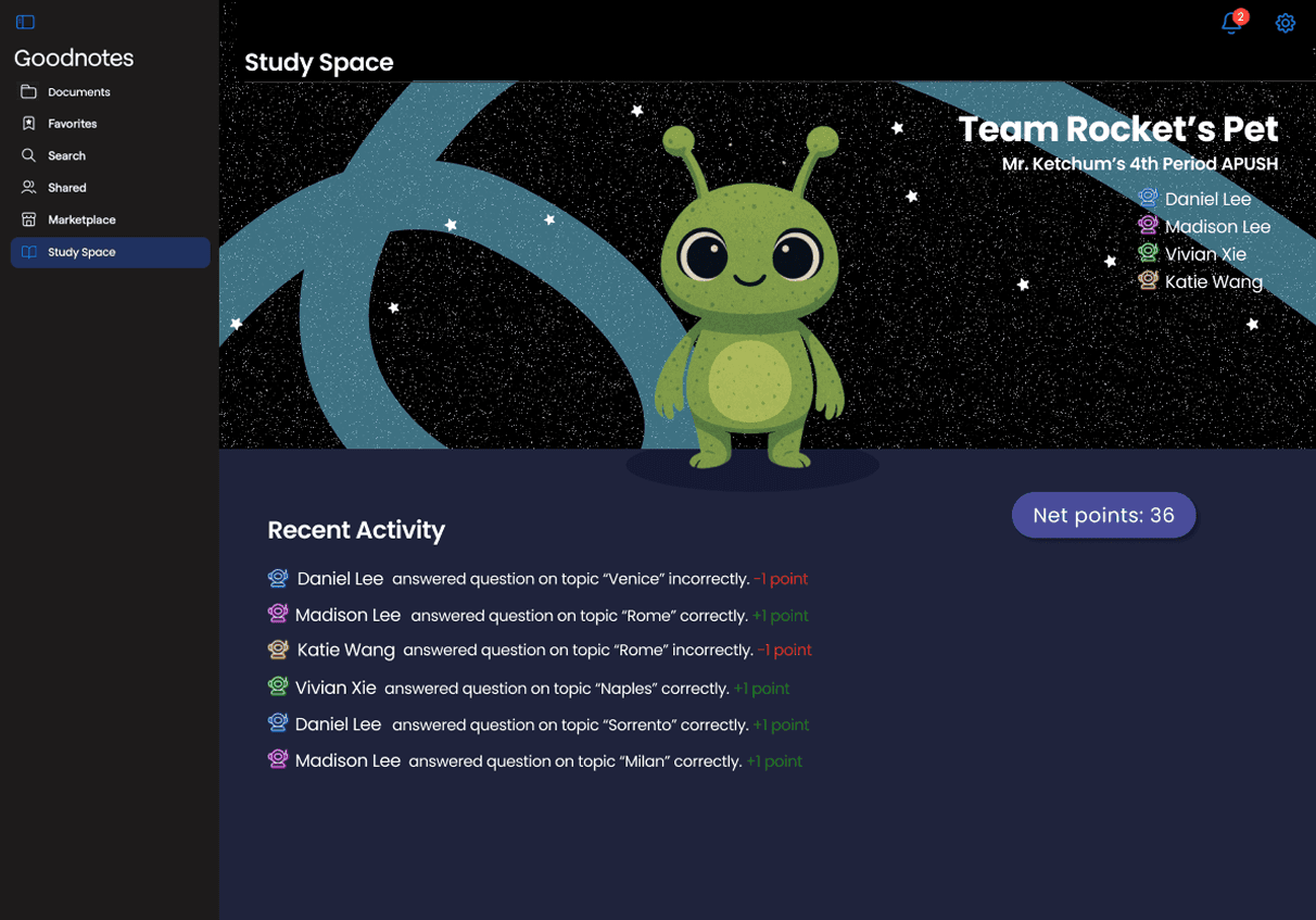 Our team designed Goodnotes StudySpace, a collaborative hub that brings group learning to life. The solution introduced three core features: